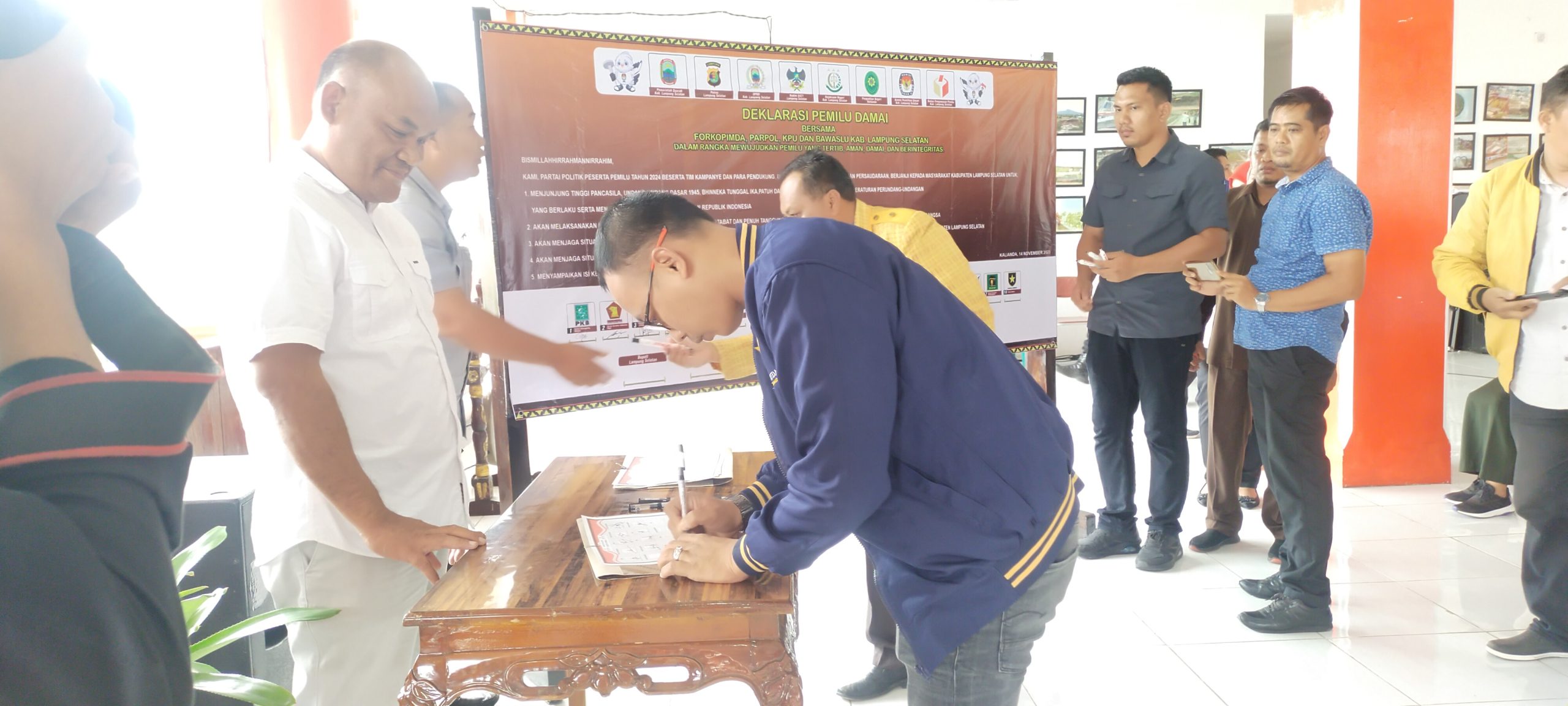 Deklarasi Damai Pemilu 2024 yang berlangsung di aula rumah dinas bupati setempat itu, diikuti jajaran Forkopimda Lampung Selatan, perwakilan partai politik, KPU dan Bawaslu Kabupaten Lampung Selatan.