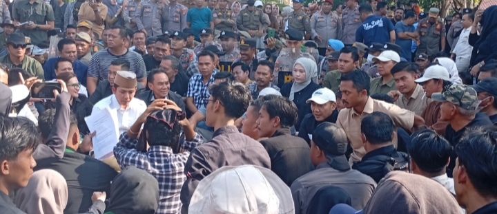 “Saya senang sekali kalian semua hari ini bisa menyampaikan aspirasi dengan cara yang tertib, damai, dan dewasa. Ini adalah ciri-ciri masyarakat yang maju,” ujar Bupati Egi, disambut tepuk tangan peserta aksi.