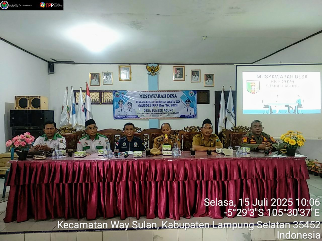 Lampung Selatan,www.beritaindonesia.org — Uspika kecamatan way sulan, menghadiri kegiatan Musyawarah Desa (Musdes) dalam rangka Perencanaan Penyusunan Rencana Kerja Pemerintah (RKP) Desa Sumber Agung Tahun 2026 yang dilaksanakan di Aula Desa Sumber Agung.