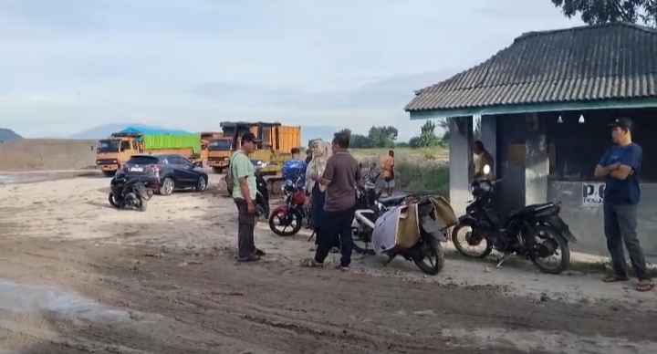 Pagi tadi kami bersama warga sudah datang protes akibat debu dan kotoran yang terbawa ban pengangkut pasir dari stokpel pasir yang mengakibatkan ada warga yang sedang melintas kecelakaan akibat licin.