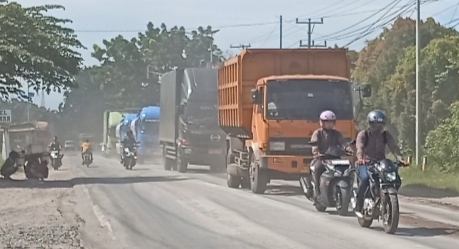 Warga Dan Pengendara Keluhkan Debu Truk Pengangkut Pasir Berhamburan di Jalan Lintas Sumatra, Katibung